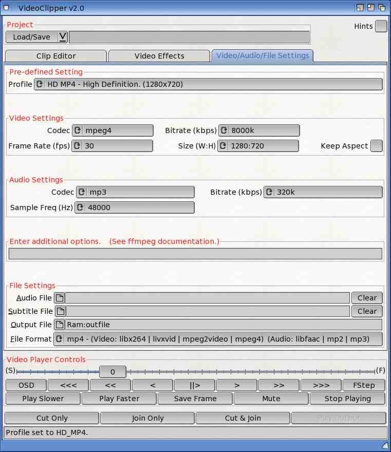 | Posted by: ktadd (76.102.24.227) | At: 15 Jan 2013, 16:02 | Version: 1.0 | VideoClipper Video/Audio Settings tab