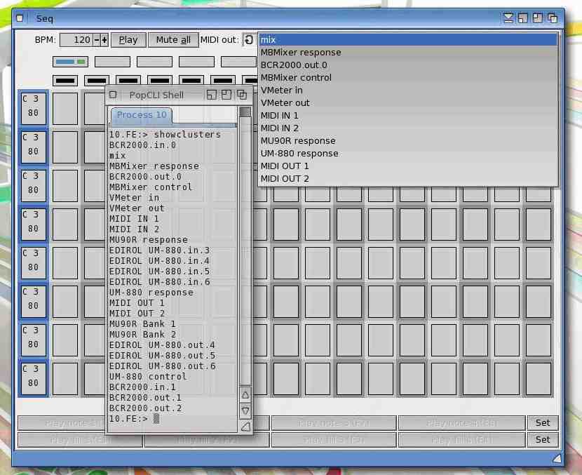 Shows Seq with the MIDI list exposed, and a shell showing the complete list that