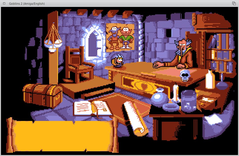| | Posted by: fingus (217.191.95.69) | At: 09 Mar 2011, 22:20 | Version: 1.2.1 | ScummVM in action with English Amiga-Version of Gobliins2